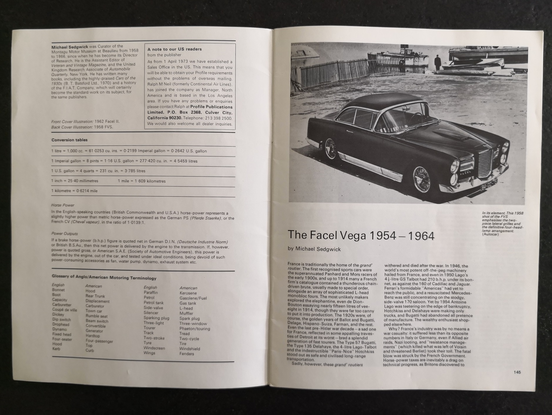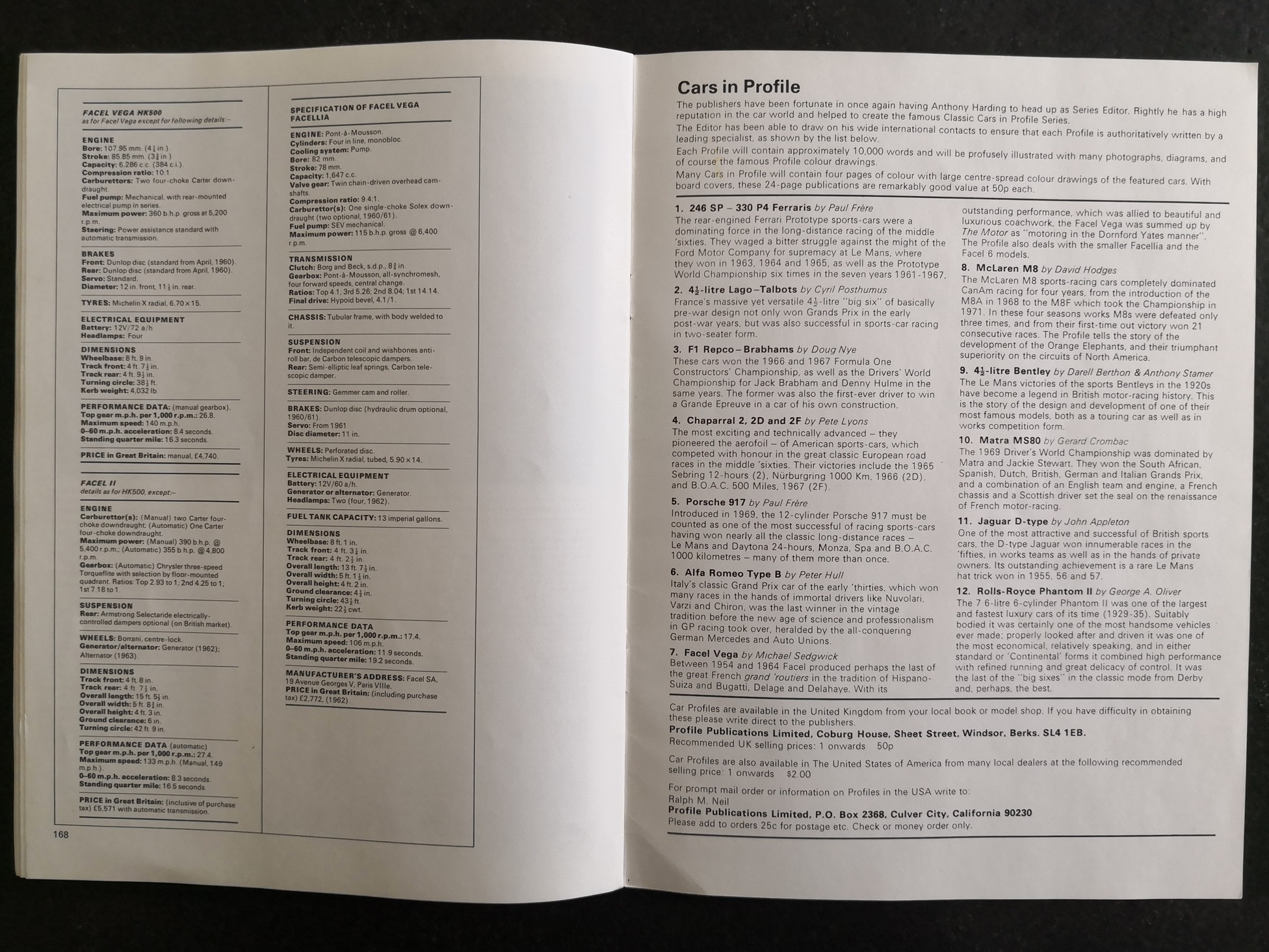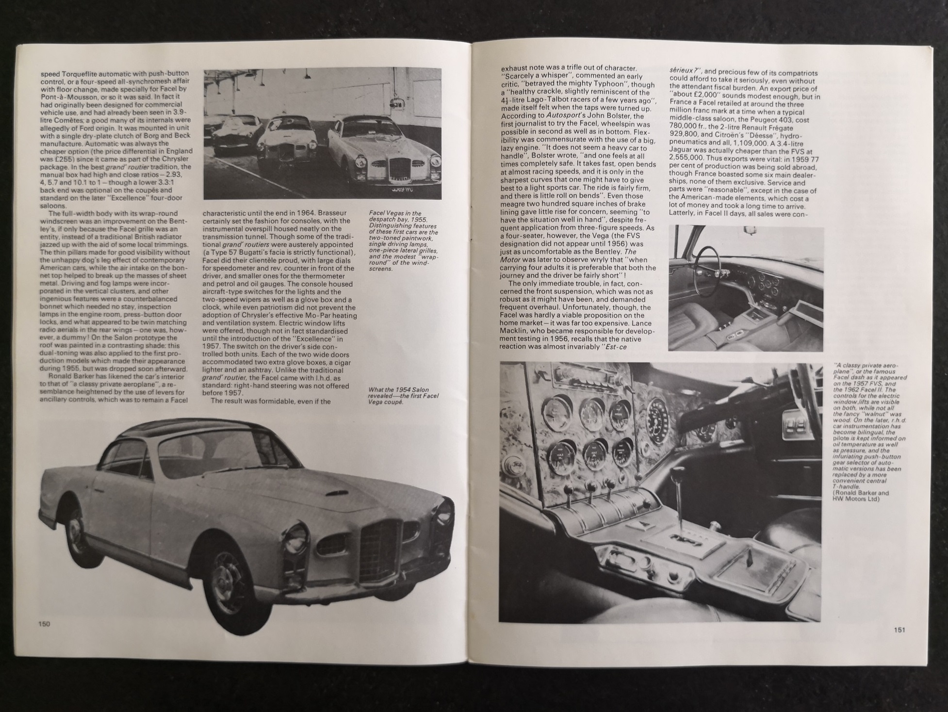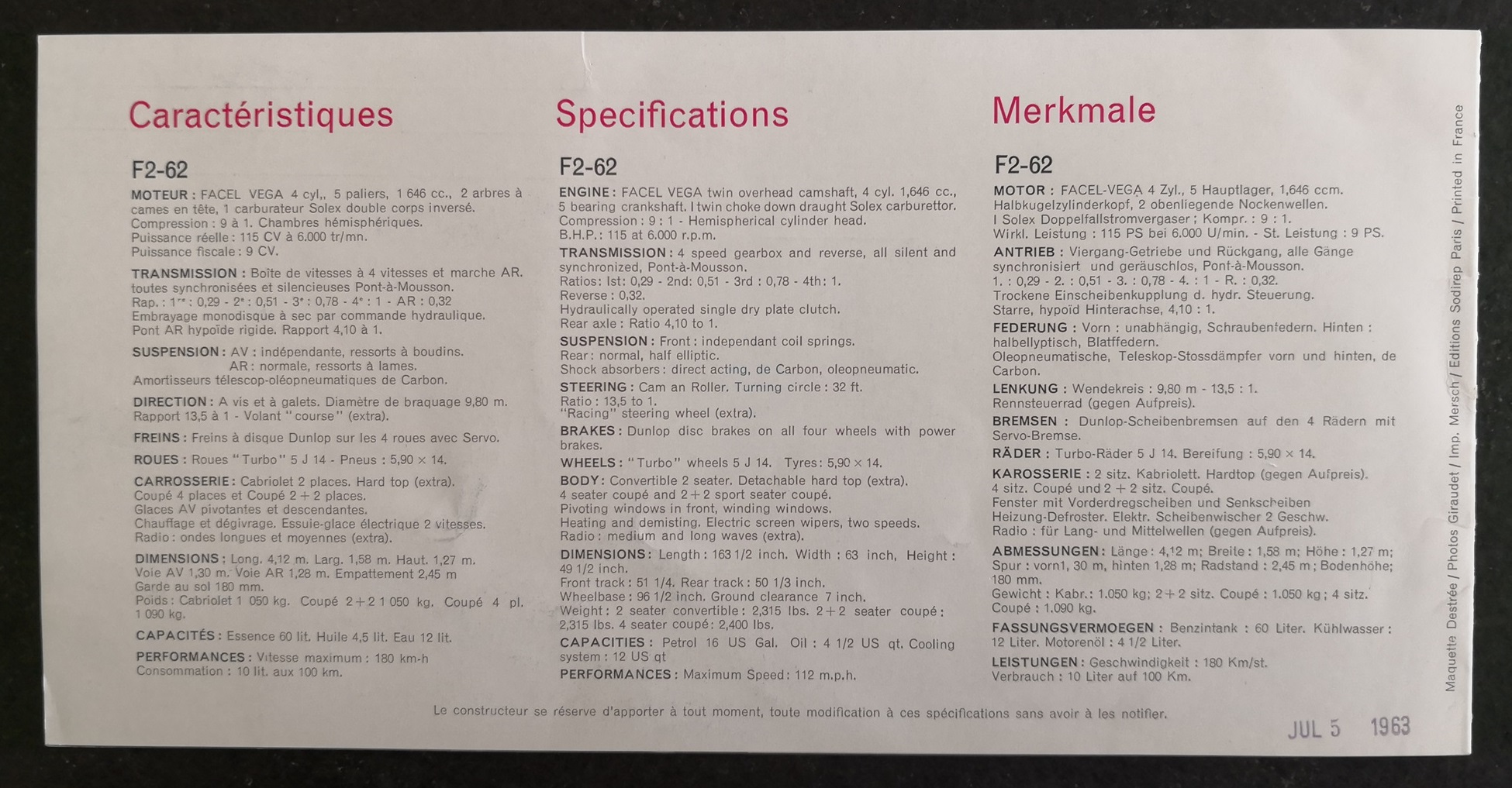 Hier zeige ich die Prospekte aus meiner eigenen Sammlung, die ich gerade verkleinere, wertvolle Dokumente aus der Produktionszeit dieser herrlichen Automobile. Ergänzt werden die Originalunterlagen durch das Register aller Facel Vega Fahrzeuge von Hans Ruhé aus dem Jahr 1990 sowie ein Faltblatt von Dr. Jürgen Kromer mit Informationen zur Marke aus dem Jahr 1992/93.